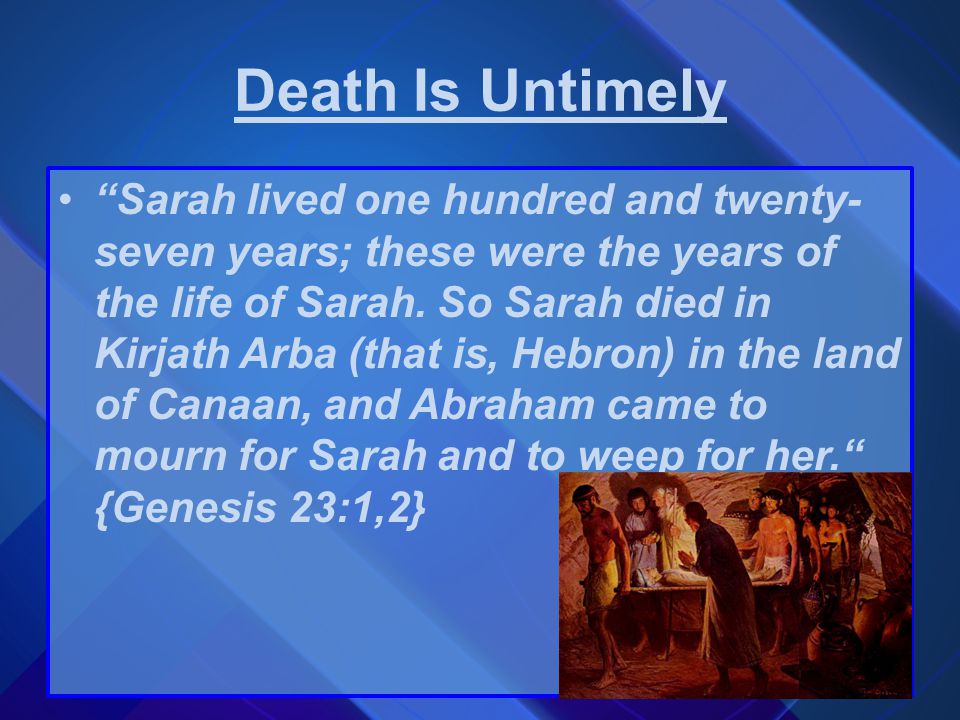 - Abraham, after having mourned the passing of his wife for the number of days according to the customs of that time is now faced with another problem.